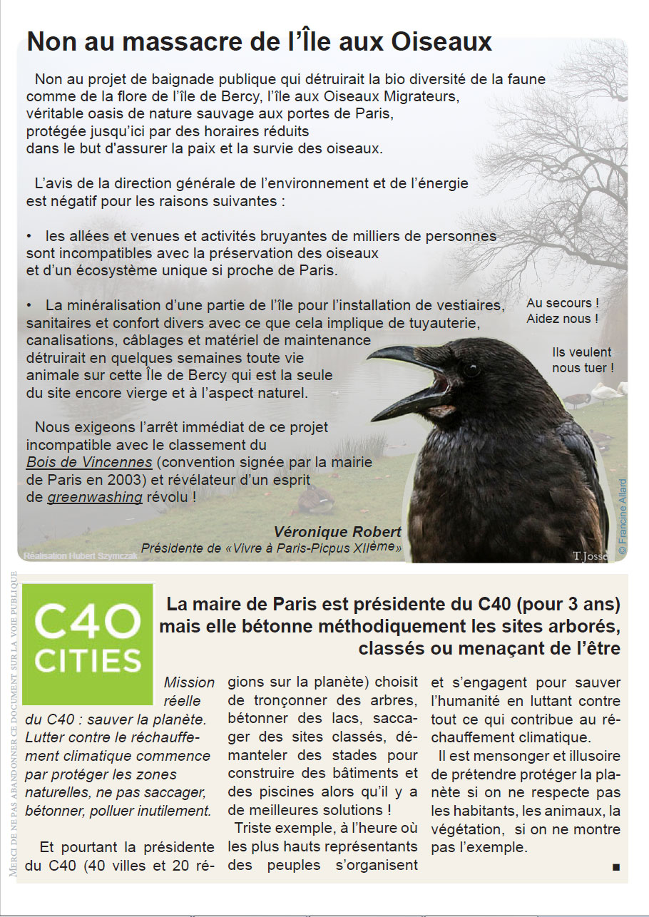 - Si vous pouvez, envoyez ce document à tous les élus, médias, responsables, décideurs, et au ministre Nicolas Hulot, qui n’aura pas à chercher l’argumentation pour dire à la maire de Paris d’arrêter ses délires une fois pour toutes, car les dégâts seront irréversibles.
