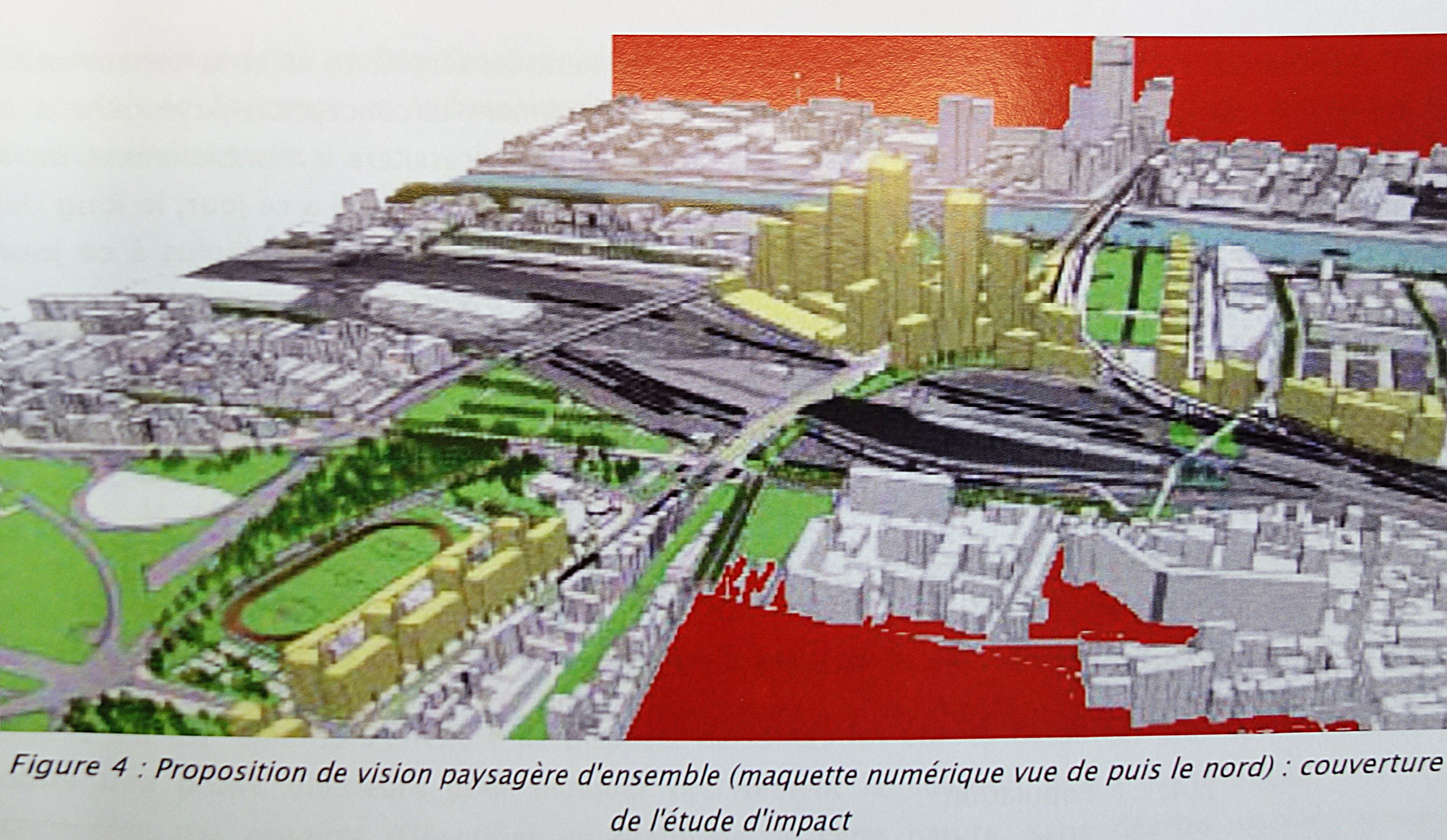 Le faux projet. On n’aura jamais l’argent pour construire tout ça. Mais détruire le stade, oui , sans problème.
