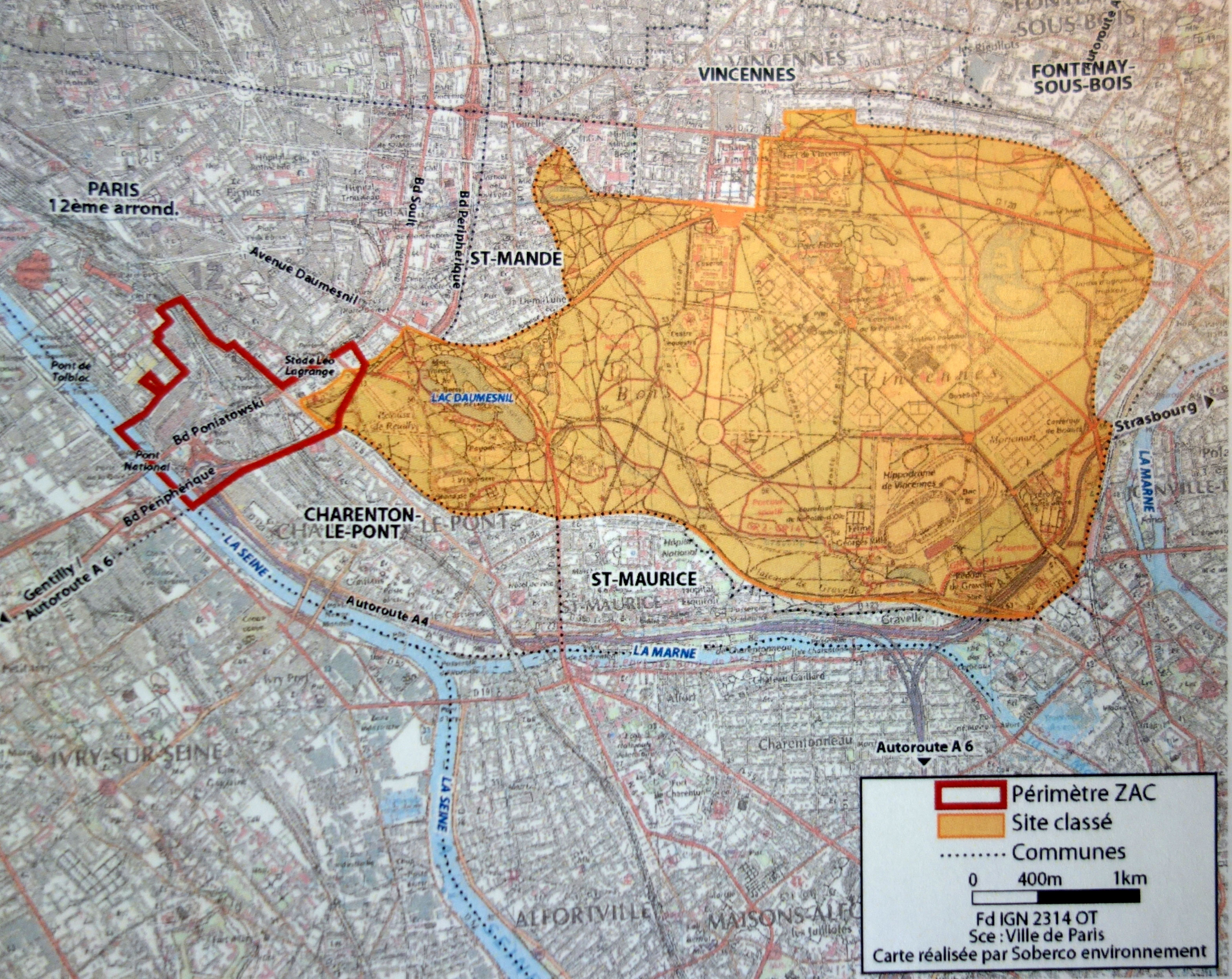 La corne OUEST du Bois de Vincennens est en contact avec la capitale.
