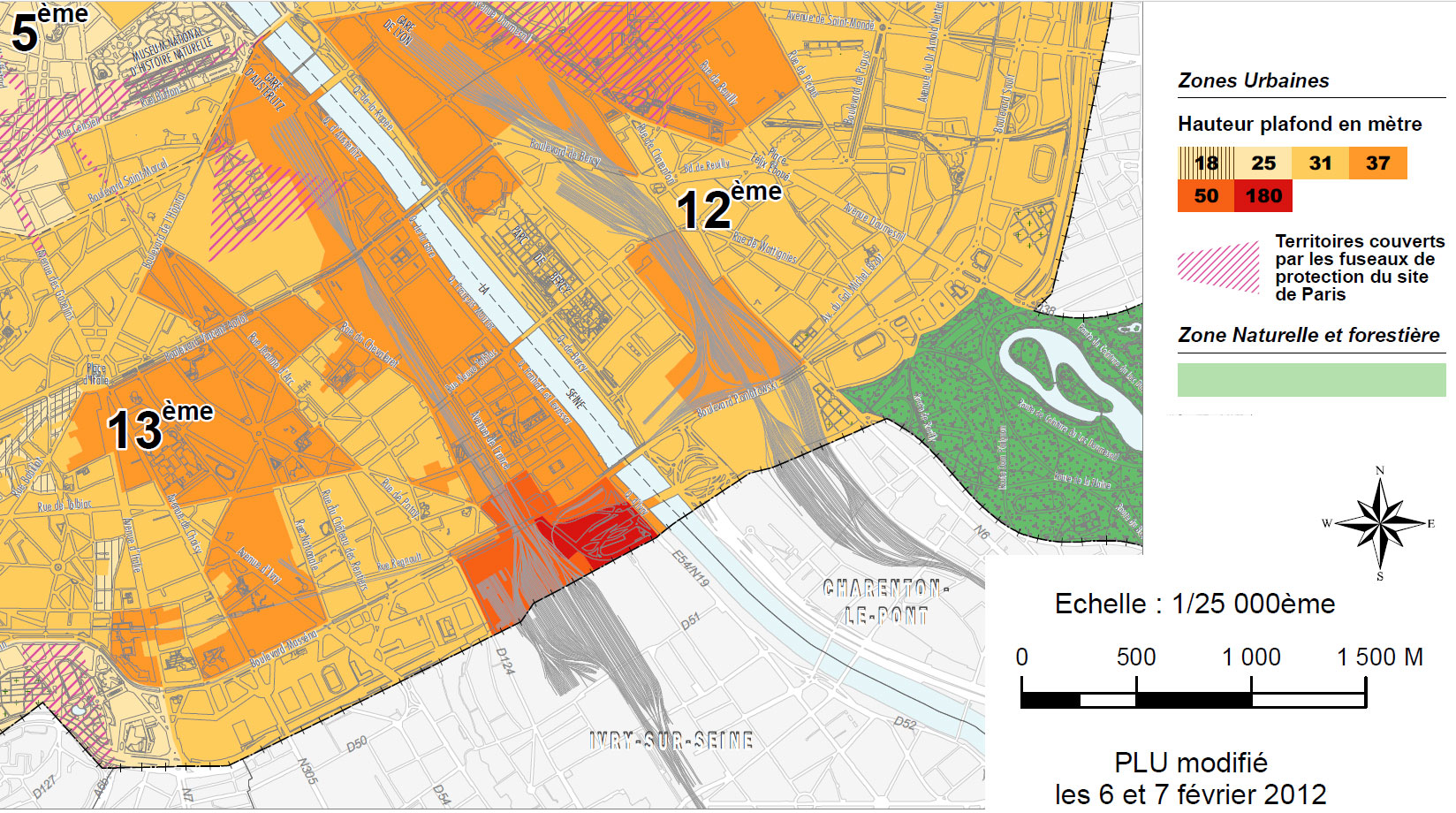 Oui, SURPRISE ! Regardez ! la zone jaune (voir légende : jaune = site classé !) la moitié du stade Léo Lagrange est classée ! Ah ! Ah ! Voilà pourquoi les barres sont prévues coté Boulevard poniatowski. Souvenez vous des documents de proposition de modification des zones ! IL NE FAUT PAS TOUCHER A CETTE ZONE.