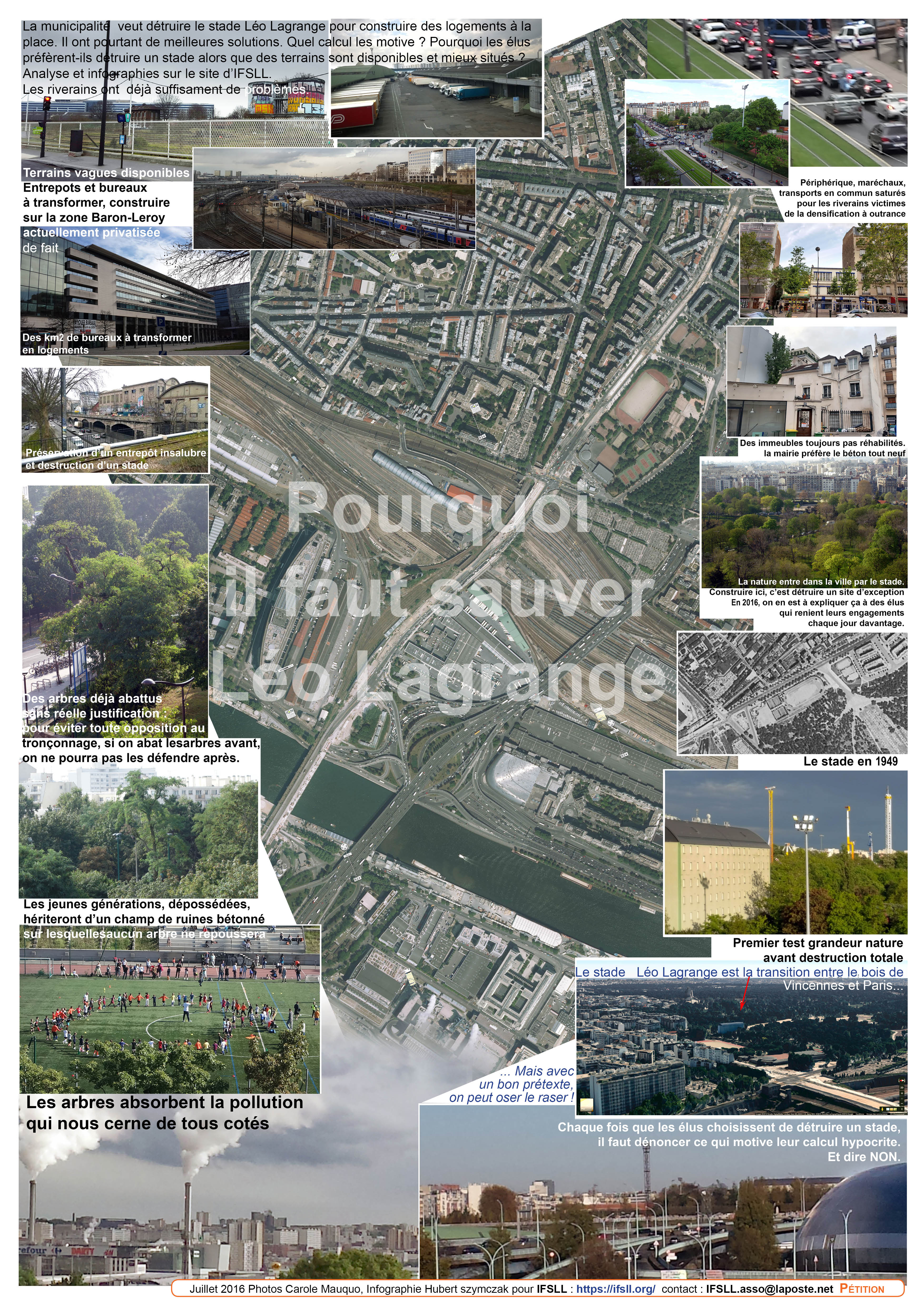 La destruction de Centre Sportif Léo Lagrange serait la preuve éclatante, terrible et glaçante que la municipalité, après avoir ignoré toutes nos bienveillantes remarques et propositions, choisit de préserver le site Baron Leroy et quelques entrepôts privatisés et de sacrifier les milliers de pratiquants sportifs et riverains du stade.