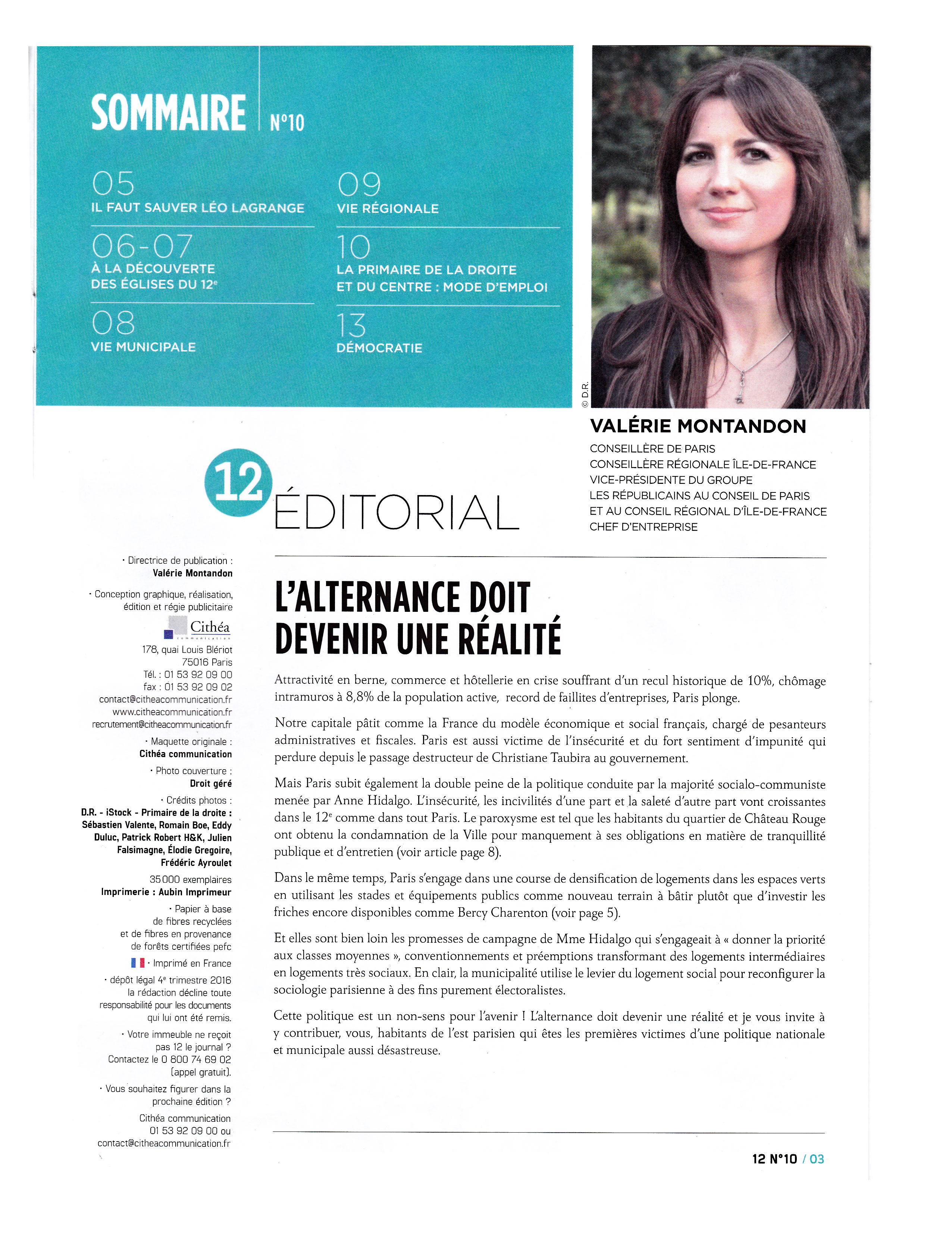 Lundi 17 octobre 2016, nous avons eu l’honneur de rencontrer Valérie Montandon, Conseillère de Paris du 12ème arrondissement de Paris, Vice-Présidente du Groupe les Républicains au Conseil de Paris, Présidente du groupe les Républicains du 12ème.